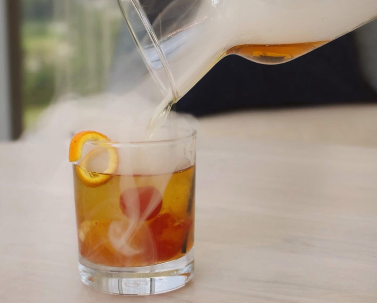 Buffalo trace bourbon, simple syrup, aromatic bitters, and orange bitters.