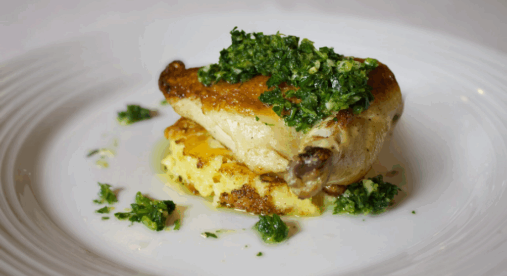 Enjoy our tender Airline Chicken Breast, served atop creamy smoked Gouda polenta, finished with a vibrant lemon gremolata for a burst of flavor in every bite.